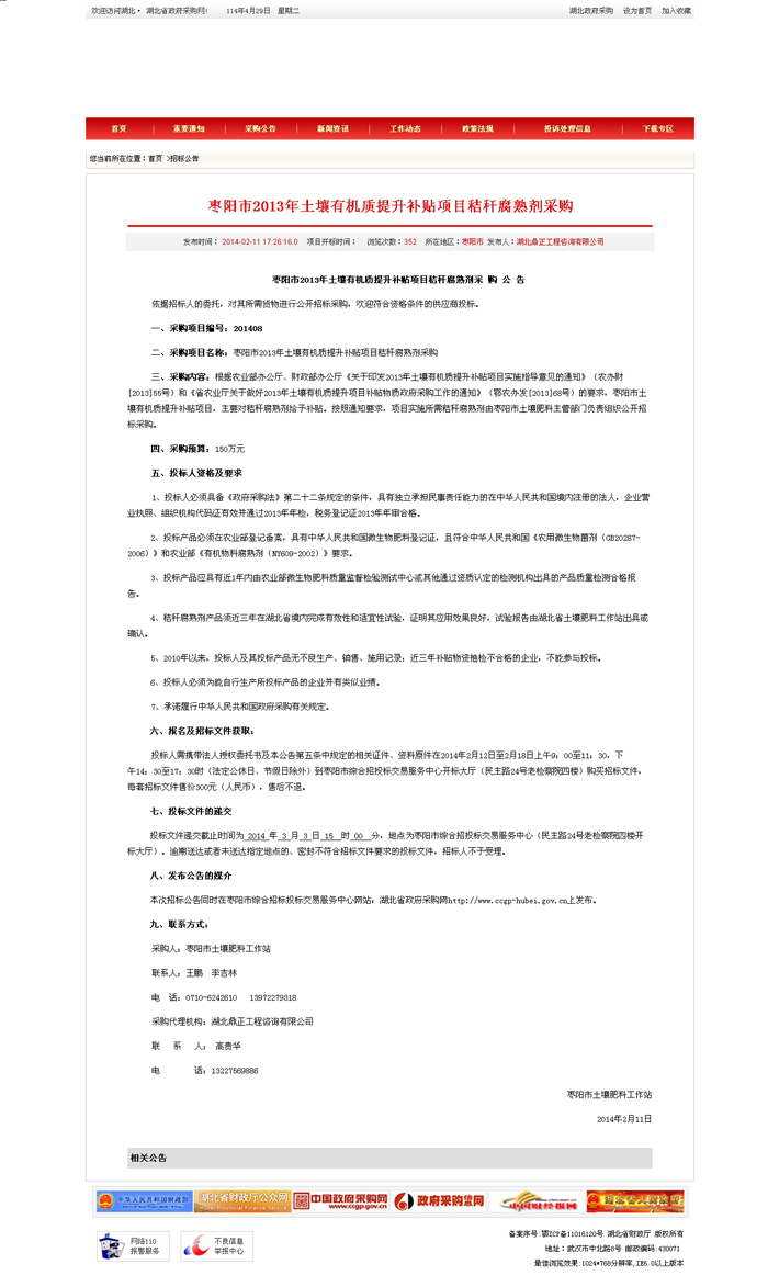 棗陽市2013年土壤有機(jī)質(zhì)提升補貼項目秸稈腐熟劑采購