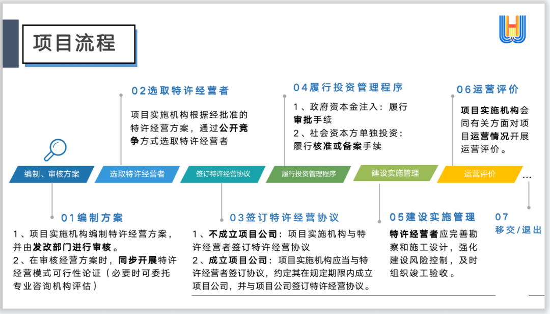4、地方各級人民政府應(yīng)授權(quán)有關(guān)行業(yè)主管部門、事業(yè)單位作為項目實施機構(gòu),完成相應(yīng)的方案編制、特許經(jīng)營者選擇等流程。