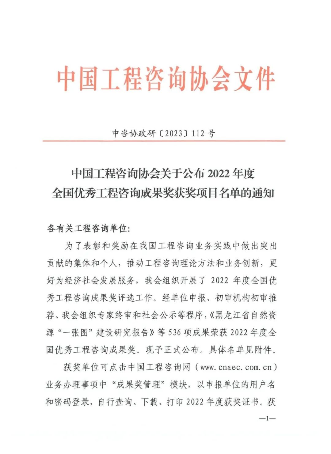 每?jī)赡暝u(píng)選一次,2018-2019年,我司大悟縣宣化店旅游名鎮(zhèn)建設(shè)PPP項(xiàng)目首獲“全國(guó)優(yōu)秀工程咨詢成果獎(jiǎng)”榮譽(yù);2020-2021年,我司武漢市江夏區(qū)清水入江PPP項(xiàng)目再獲該獎(jiǎng);2022-2023年,我司東數(shù)西算貴安新區(qū)算力立業(yè)集群配套項(xiàng)目第三次獲得此殊榮。