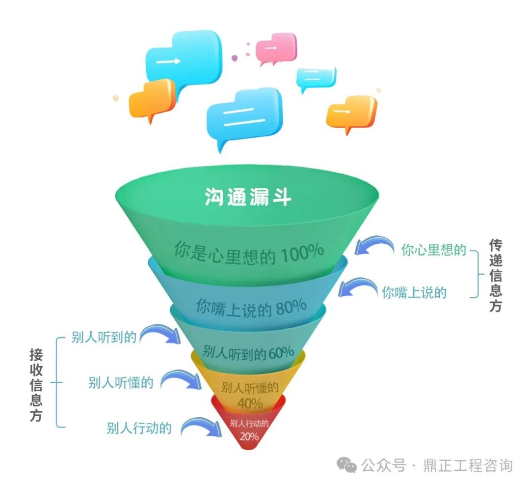 從溝通方到接收方,中間涉及很多環(huán)節(jié),也或多或少存在“溝通漏斗”的情況,比如表達(dá)不清醒、信息損耗、理解偏差、反饋有誤等。