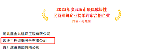 11月21日,武漢建筑業(yè)協(xié)會正式公布“2023年度武漢市最具成長性民營建筑企業(yè)”、“2022-2023年度武漢地區(qū)建筑業(yè)優(yōu)秀企業(yè)、優(yōu)秀企業(yè)家、優(yōu)秀總工程師、優(yōu)秀項(xiàng)目經(jīng)理”兩項(xiàng)評選結(jié)果,鼎正連續(xù)上榜,斬獲多項(xiàng)行業(yè)榮譽(yù)!